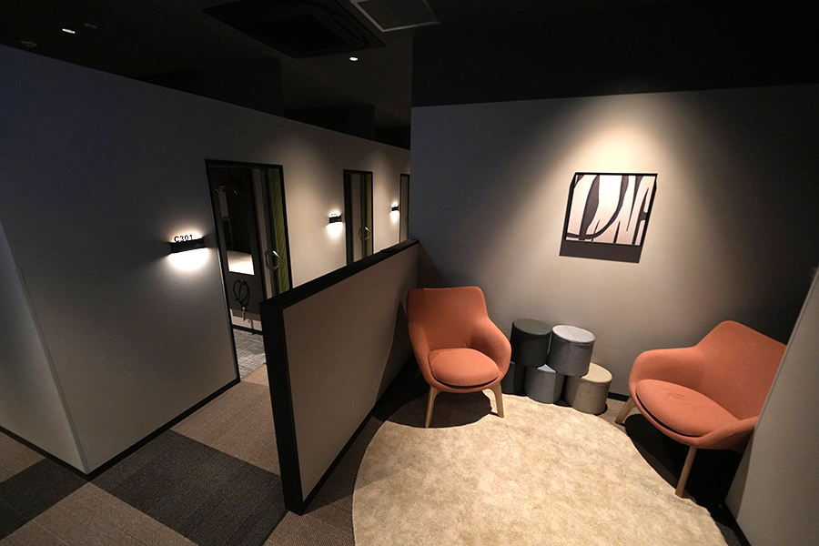 Unlike capsule-type rooms, the height is such that you can stand up and get changed, allowing you to stay stress-free.